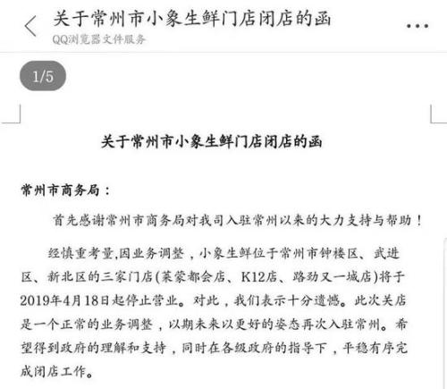 4月15日,开业不足半年的小象生鲜常州多家门店宣布将于4月18日停业。与此同时,小象生鲜无锡门店也被曝将要停业。截至发稿前,美团相关负责人尚未对此给出回应。据常州当地媒体曝出的一则闭店函件显示,小象生鲜位于常州市钟楼区、武进区、新北区的三家门店将于4月18日起全面停止营业,此次关店属正常业务调整,将涉及34名员工受到影响,关于员工安置及预付卡退卡也会有相应解决方案。